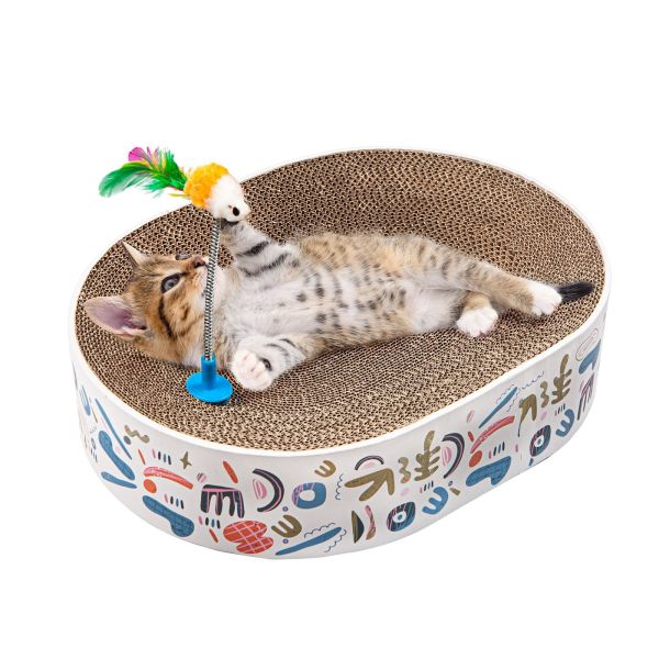 2 in 1 Oval Cat Scratch Pad Bowl Nest for Indoor Corrugated Lounge Cat Beds Protector for Couch & Carpets & Sofas Manufactures